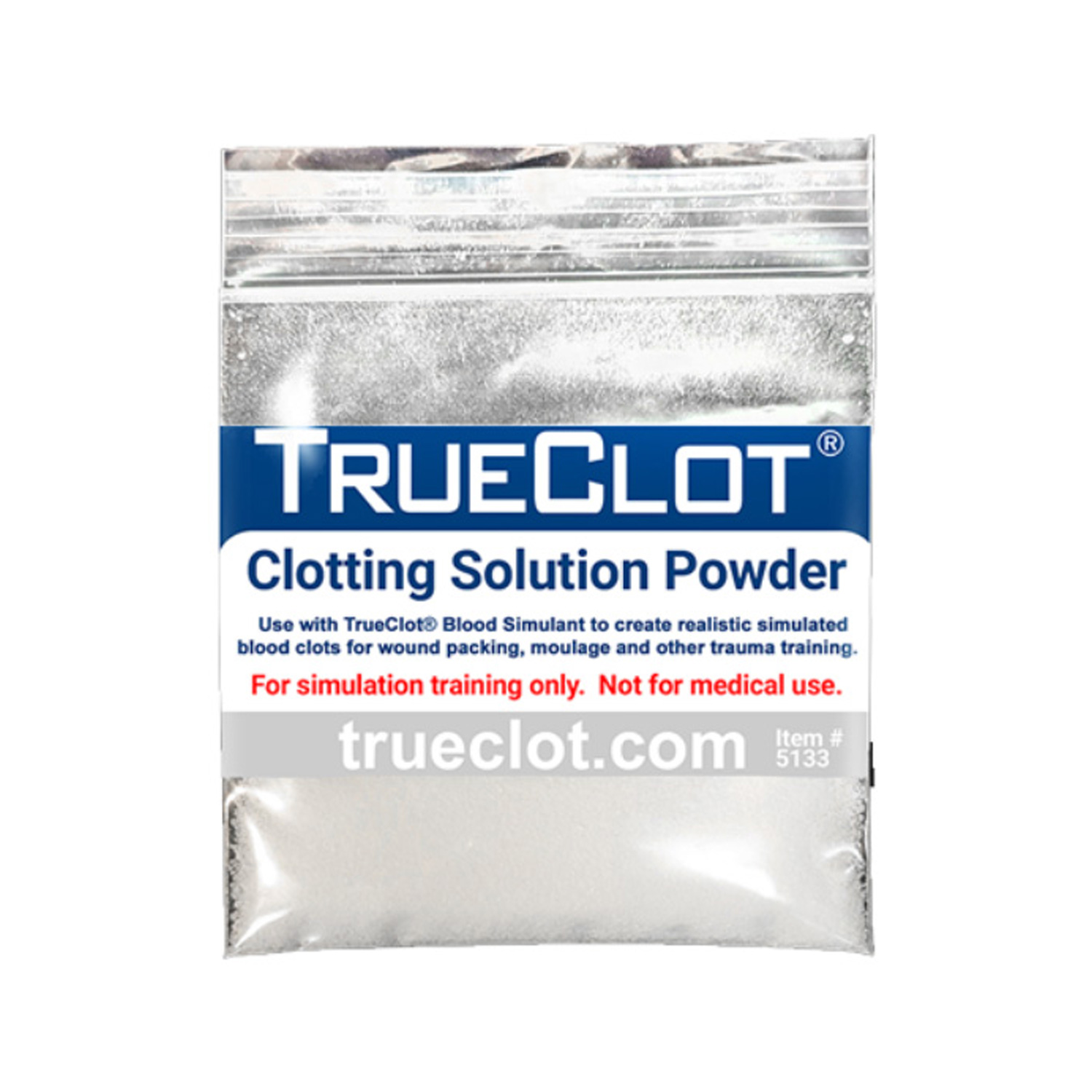 - Forms highly realistic, simulated blood clots when mixed with TrueClot® Clotting Solution or Simulated Hemostatic Gauze