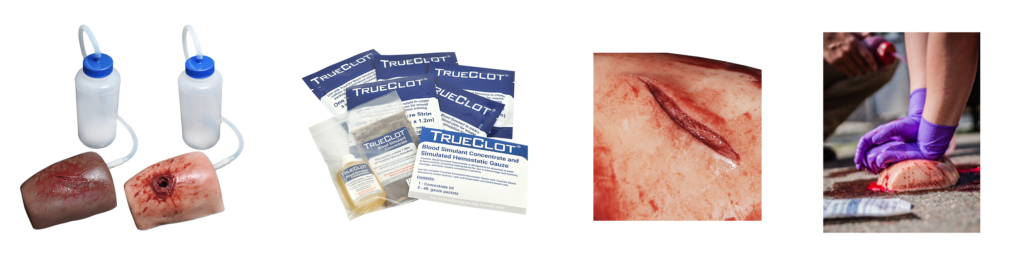 All TrueClot Wound Packing Task Trainers come with a packet of TrueClot Blood Simulant Concentrate and 5 packs of 4ft. TrueClot Simulated Hemostatic Z-fold Gauze.